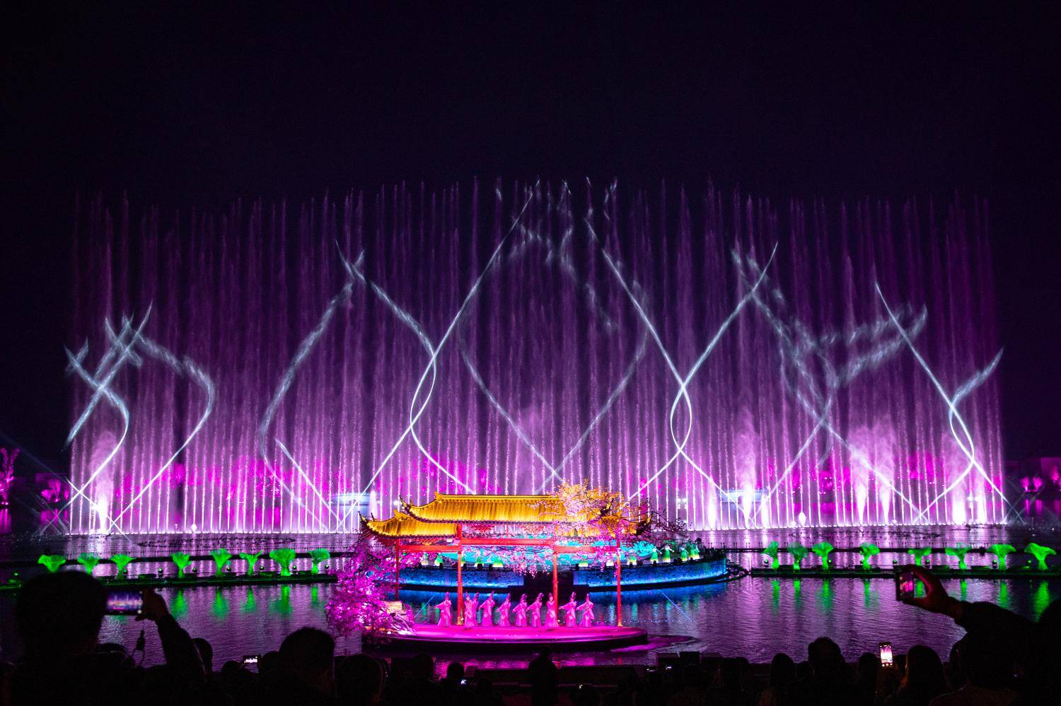 《天漢傳奇》根據(jù)《詩經(jīng)》上記載 “漢有游女” 的美麗傳說,以 “漢水神女” 為故事人物脈絡展現(xiàn)故事情節(jié),采用國際領先舞臺技術,為游客呈現(xiàn)出一幅漢文化的動人傳奇畫卷。