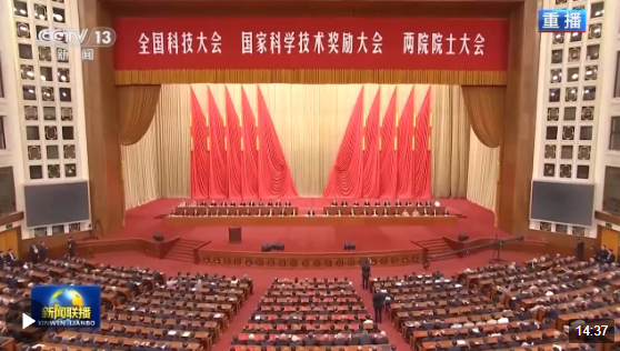 △全國科技大會、國家科學技術獎勵大會、兩院院士大會在北京人民大會堂舉行。(總臺央視記者李增仁拍攝)