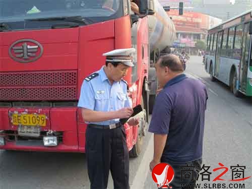 8月3日,商州交警大隊(duì)民警在市區(qū)立交橋處值勤時對違法入城的?;愤\(yùn)輸車輛進(jìn)行安全檢查。