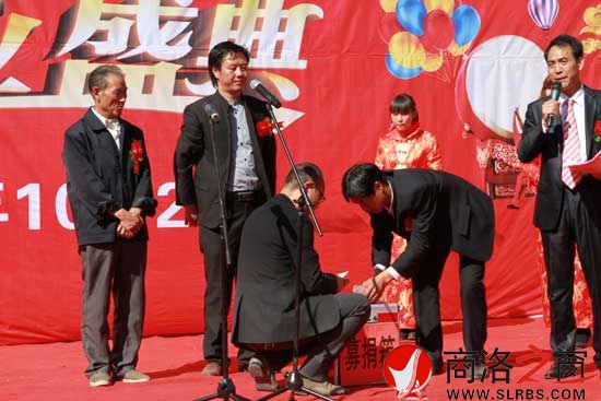 商洛日報 - 商洛之窗訊(記者 楊鑫 記者 李小軍 攝 )10月25日,商州區楊峪河鎮上演了一場特殊的開業慶典,吸引了上千名群眾圍觀。商州東方建材家居城節儉辦開業慶典,為我報曾多次報道的高位截癱女孩任妮妮籌集手術費,開業慶典變成了現場慈善捐助活動。