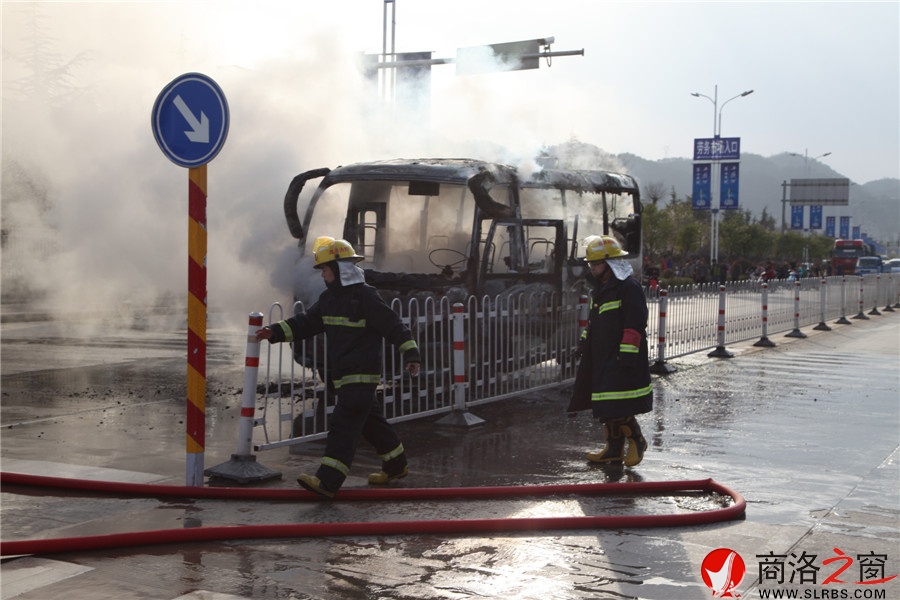 3月20日下午5時許,一輛由商州開往牧戶關鎮的通村客車,在行駛到市區江濱大道立交橋十字時突然起火。據交警商州城區中隊交警介紹,當時車上有12名乘客,司機發現發動機冒煙后及時疏散了乘客,事故沒有造成人員傷亡,初步斷定起火原因為車輛自燃。(記者 楊鑫 攝)