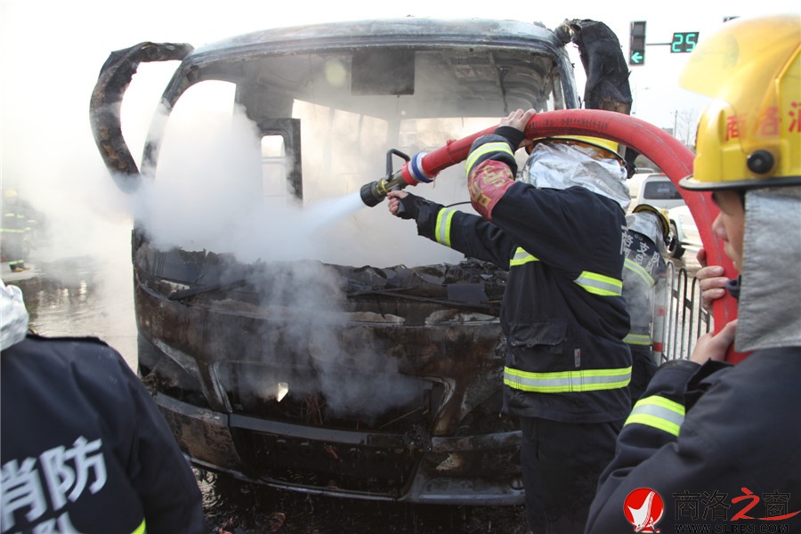 3月20日下午商州至牧護關通村客車突然起火(多圖高清)