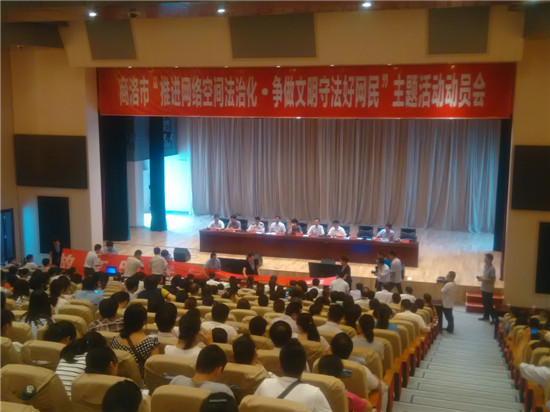 本報訊(記者 李小軍)7月9日早,全市開展"推進網(wǎng)絡(luò)空間法治化·爭做文明守法好網(wǎng)民"主題活動在行政中心舉行動員大會,活動由市委宣傳部、市委網(wǎng)信辦、市網(wǎng)信辦主辦,華商報(網(wǎng))、移動商洛分公司承辦。市委常委、宣傳部長劉淑慧講話。