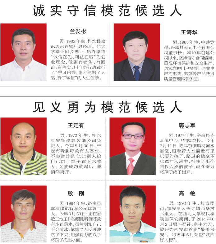 按照市委宣傳部、市文明辦、市總工會、團市委、市婦聯(lián)《關于開展第五屆商洛市道德模范推薦評選工作的通知》要求,經各縣區(qū)、市直各部門擇優(yōu)推薦上報、市道德模范評選表彰活動組委會審議、市文明委成員單位會議討論通過,確定第五屆商洛市道德模范候選人24名,道德模范提名獎候選人13名,現(xiàn)將主要事跡進行公示,公示時間11月9日-16日。如對所公示候選人有意見,請于11月16日前向組委會辦公室反映。地址:商洛市文明辦(商洛市行政中心1825號)電話:0914-2381100電子郵箱:slswmb@163