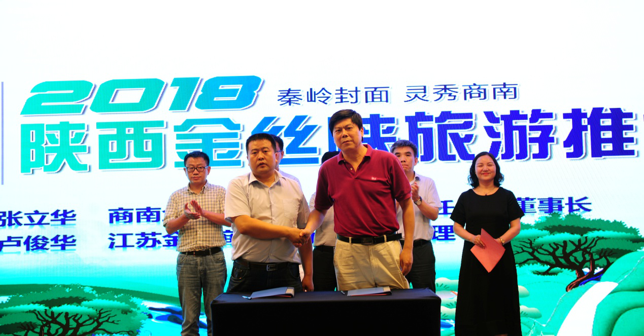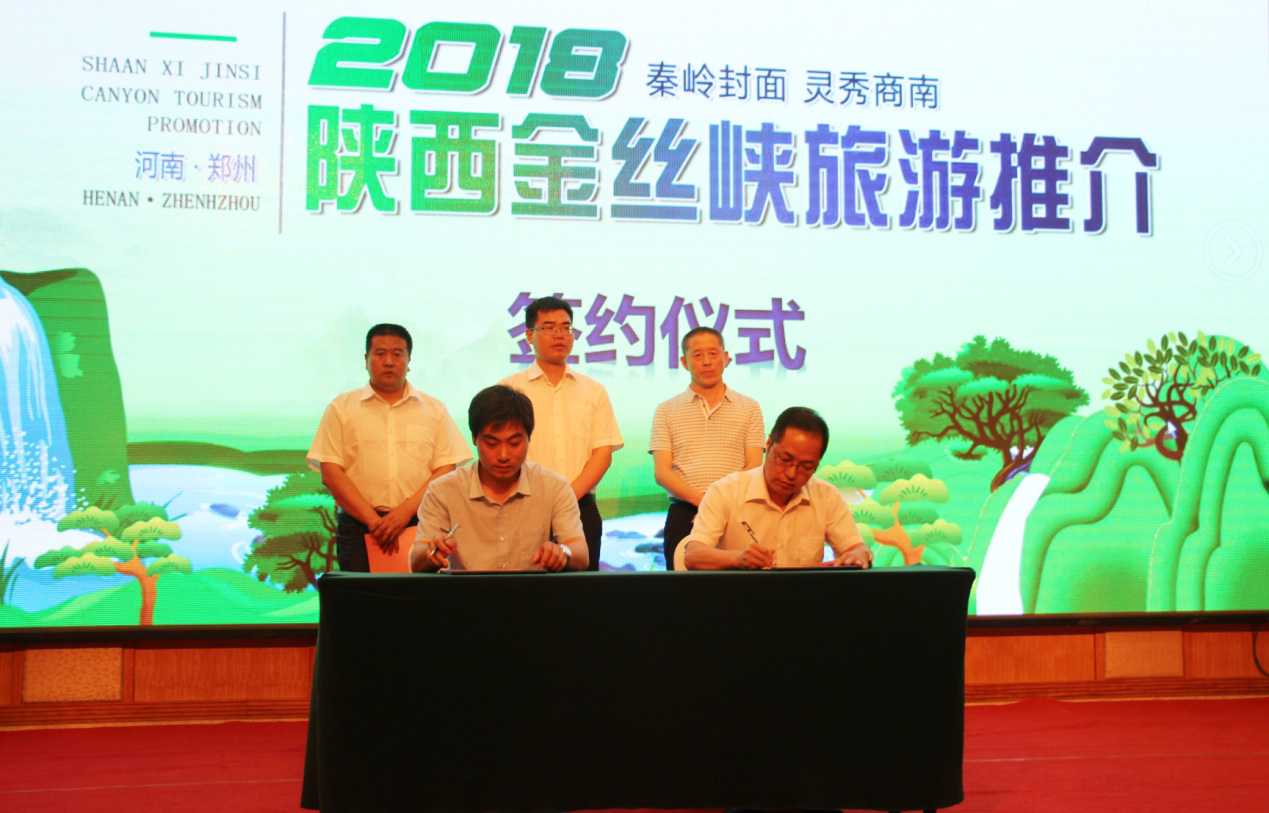 2018年陜西•金絲峽旅游推介會由商洛市旅游發展委員會,中共商南縣委、縣人民政府主辦,商南縣旅游發展委員會、金絲峽景區共同承辦。推介會上捧出旅游大禮包,發布了商南縣金絲峽•闖王寨景區對蘇、豫兩地旅游優惠政策,并與四地區域代理旅行社簽訂了合作協議。