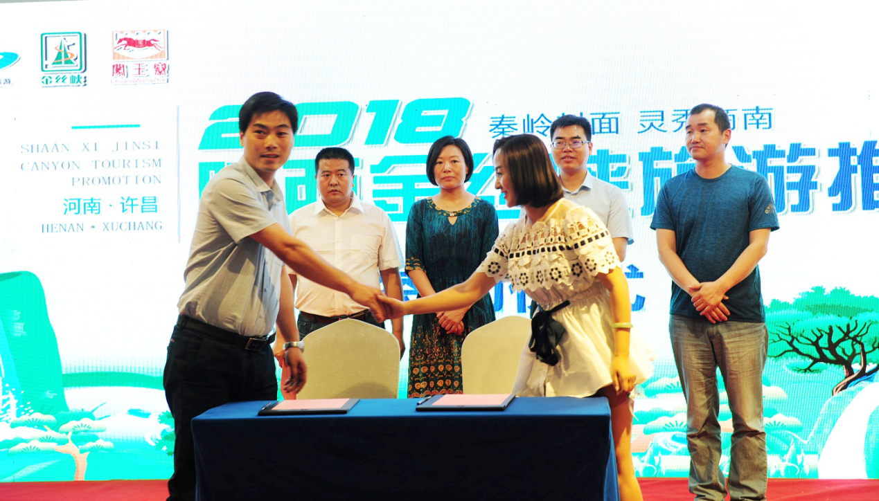 金絲峽旅游發展公司經理呂淵分別與許昌、鄭州旅行社簽訂了合作協議