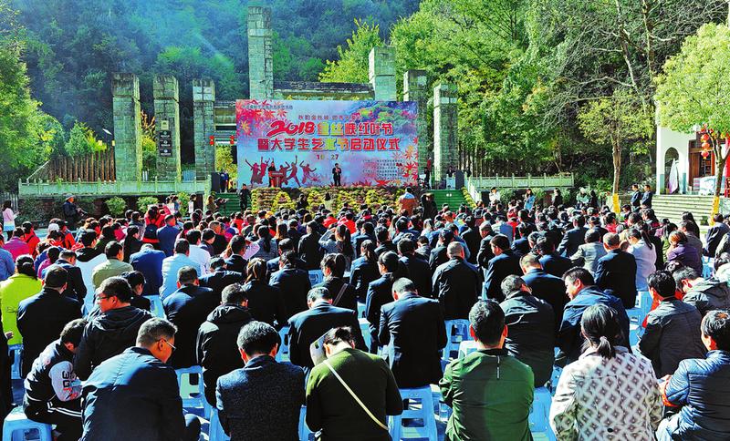金秋十月,萬山紅遍。10月27日上午,2018金絲峽紅葉節暨大學生藝術節開幕式在金絲峽景區舉行,來自全國各地的媒體、旅行社、攝影愛好者和游客們共1000余人見證了活動盛況。