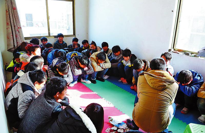 日前,我們跟隨城郊派出所打擊傳銷民警走進了傳銷窩點。在城鄉接合部的一個村子,通過七拐八彎的村中小巷,來到一座4層小樓院內,23名傳銷者租住在二樓的三間房內,其中一間為一個小頭目居住,堆滿了行李箱包,樓道的鐵絲上搭著幾十條顏色各異的毛巾,客廳擺滿了幾十雙鞋子。男生和女生分住著兩間房子,地板上鋪著泡沫墊子,七八床被子靠在墻角,象棋、撲克散落在泡沫板上,滿屋的餿臭味令人作嘔。其中的小趙、小高是夫妻倆,云南人,兩歲多的兒子留在老家。小趙是廚師,在網上被許諾當一家四星級酒店“爐頭”。小趙有一次趁機脫身,無奈怕妻子受到傷害不敢報警,又悄然返回。早晚面條,中午米飯,蘿卜是三頓飯的唯一主菜。不到一個月時間,小高明顯瘦了。說到妻子的身體,小趙眼里充滿了淚花,只有說到孩子時,兩人黯淡的眼光才明亮了許多。兩個行李箱曾裝滿打工的期望,如今,卻裝滿了傷痛回家。