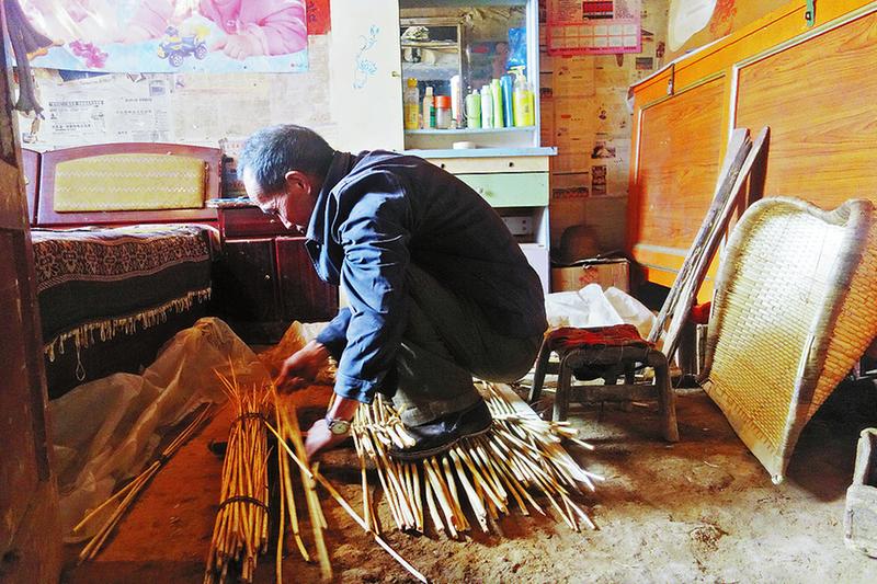 今年60歲的王套柱老人家中4口人,至今仍住在3間老舊的土房里。2015年,他家被識別為貧困戶。他說,他的父輩們曾是柳編匠人,主要編簸箕、笸籃等日常生產生活用具。“這些是最近剛編的,秋收結束,沒啥活干了,就編幾個簸箕掙些零花錢。”王套柱指著門背后整齊地疊放著幾個嶄新的簸箕告訴記者,柳編的材料是柳條、窄長的薄木條、麻繩或尼龍繩等,需要用到的工具則分別有大鐮、小刃、錐子、木尺等。