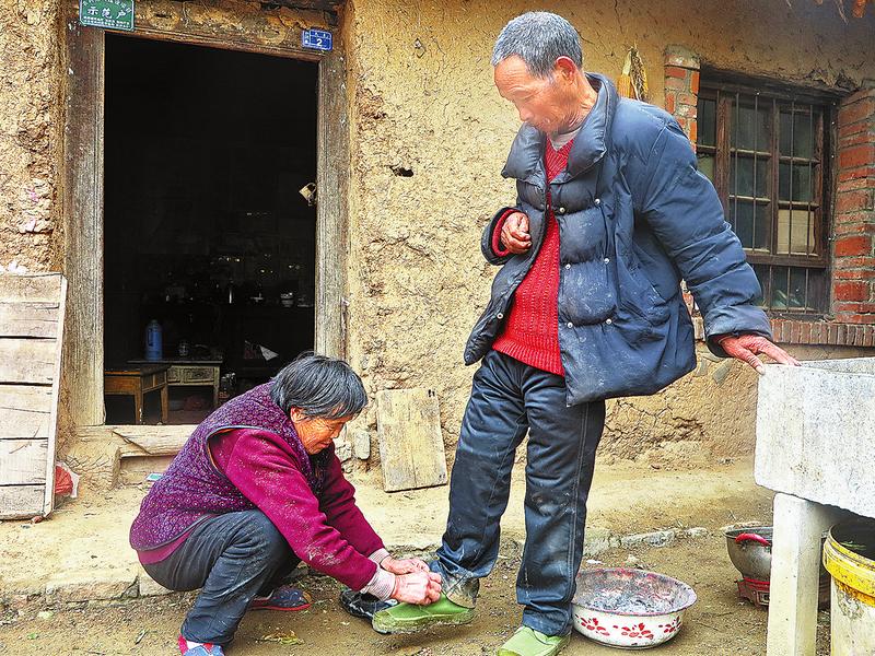 每天早上5點鐘,張拉拉就要起床,給丈夫、小叔子穿衣服,做早飯,送小孫子去學校,再一路小跑趕到廟坪村照看老人,中午抽空回來打掃村道,洗衣服,接著還要再趕到廟坪經管老人。等回到家,天已經黑了,還有一堆家務等著她干,常常要忙到半夜才能睡覺。