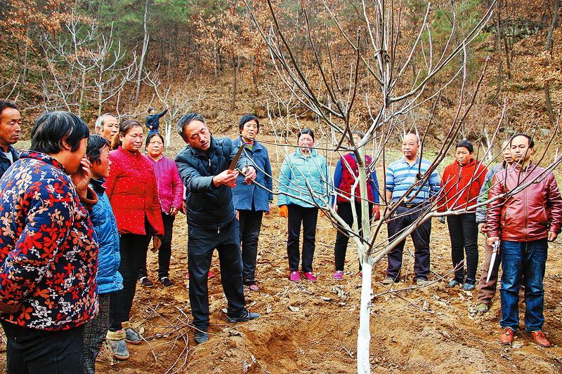 村上采取“駐村干部+黨員+貧困群眾”包抓聯動模式,即由1名駐村干部負責包抓5名黨員,1名黨員負責包抓10多名貧困群眾,分別從病蟲防治、科學施肥、越冬防凍、整形修剪等方面進行技術培訓,在全村掀起核桃科管新高潮。目前,該村共發動黨員15名,帶領群眾200多人參與,現已完成核桃科管900畝。(王小川攝)