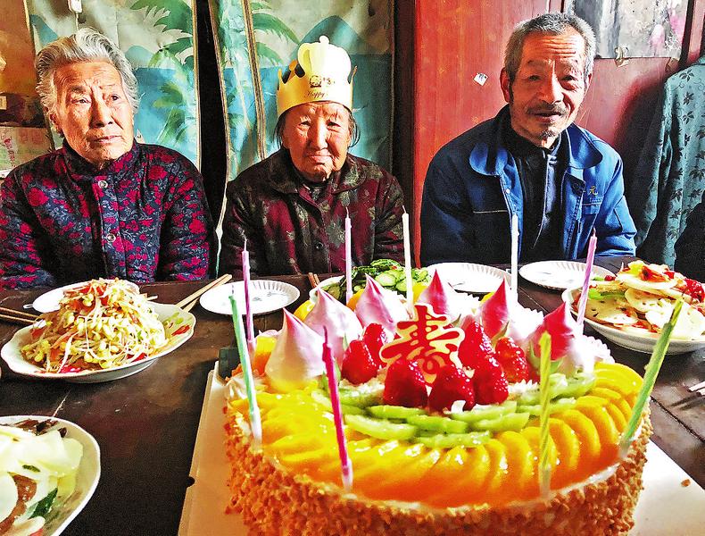 席間,大家邊吃邊聊,氣氛熱鬧,老人臉上滿是幸福的笑。“在曉珍的幫助下,我們今年就要搬到縣上移民搬遷點的新房了,沒想到我們這么大年紀還能住到縣城去。因為家里貧困,我都沒給母親過過生日,平時就是下一碗長面,打兩個荷包蛋。今天還給我母親過生日,太感謝你們了。”王興賢老人75歲的兒子史宏勛告訴記者,他和妻子一直與母親生活在一起,他的父親去世早,母親獨自照顧他們兄弟姐妹,一輩子生活在山上,沒怎么出過遠門。老人性格開朗,性情溫和,雖然已是百歲,身體還很硬朗,生活基本可以自理,平時還會幫著家里做一些力所能及的家務。包扶干部賈曉珍說,在他包扶這戶人家的這兩年里,每次上門走訪,老人都很熱情地拉著他的手有說不完的話。有一次他陪王興賢老人一起看電視,剛好電視里有個老人在過生日吃蛋糕,“她就問我這是啥,我當時聽了心里很難過。就想著剛好到老人家百歲生日了,我們鎮村的包扶干部一起給老人家過個生日,讓老人家高興高興。希望在我們的努力下讓更多老人老有所養、老有所為、老有所樂,度過一個溫馨安詳的晚年。”
