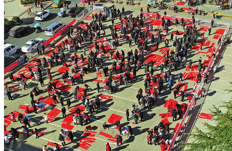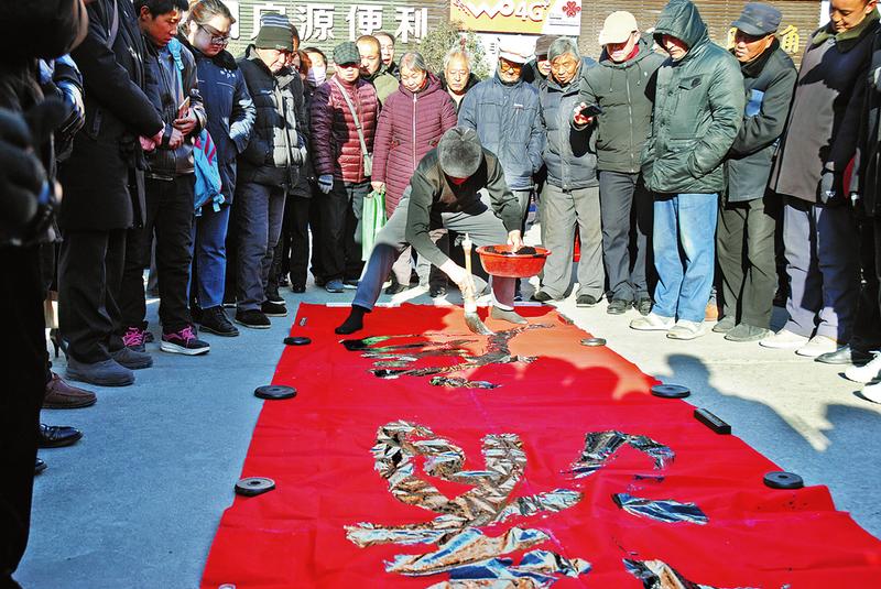 活動現場也是“廉味”濃厚。懸掛的條幅上寫著“嚴肅整治違規收送禮金,營造風清氣正政治生態”,中間地面上擺著的一幅寫好的大字“清廉”,據介紹,這幅字高5米、寬2米,筆勢有力,雄渾蒼勁。不時還有“清泉碧水人心美正氣廉風日月明”“以德治國興業財旺艱苦創業國富民康”等對聯被群眾一一帶走。據了解,當天參與活動的有中省書協會員和書法工作者160余名,共寫出6000副春聯和2000張福字,營造了文明節儉、風清氣正的節日氛圍。