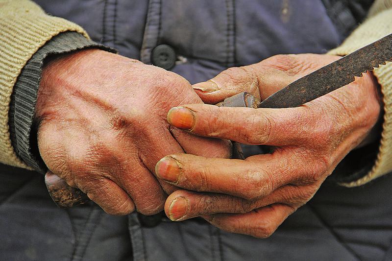 年近不惑的王小鵬,只得出門打工,做點粗活養家糊口。王福情有點后悔,當年,是他堅持讓兒子學的手藝,是他說:“有個手藝總比打工好。”然而,社會前進的車輪任誰也無法阻擋,王福情又像是自我安慰般說:“社會發展了么,誰都沒辦法的。”話語里,有那么一點不甘和不舍。