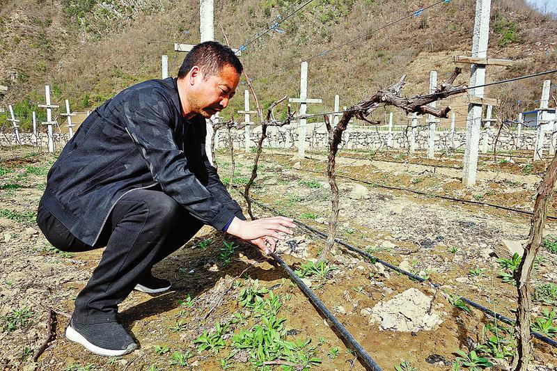 今年,謝書長早早地請來專家,在葡萄園里投資了十多萬元建立起一套滴灌系統,徹底解決了葡萄園的灌溉問題。現在施肥時,可以將化肥溶解在水中,在澆水的同時也施了肥,大大縮減了時間和人工成本。記者走在葡萄園中,看到葡萄樹已經發芽,有了現代農業科技的加持,今年的葡萄必定能豐收。