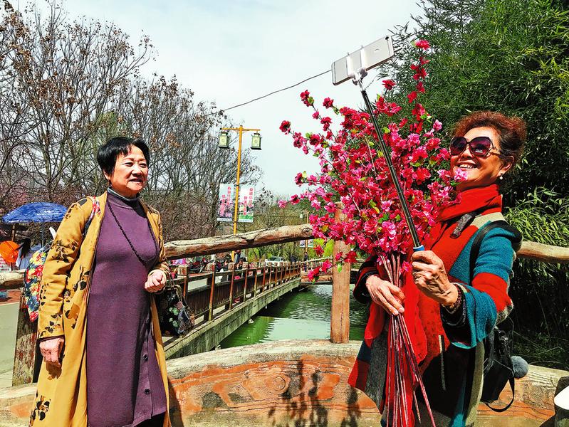 在丹鳳縣竹林關鎮桃花仙子廣場附近,電瓶車接送游客等服務為老年人上山觀賞桃花帶來便利。3月23日,68歲的王根引和女兒一起來到桃花谷,欣賞美景的同時購買紀念品、品嘗特色美食也為旅途增添不少樂趣。