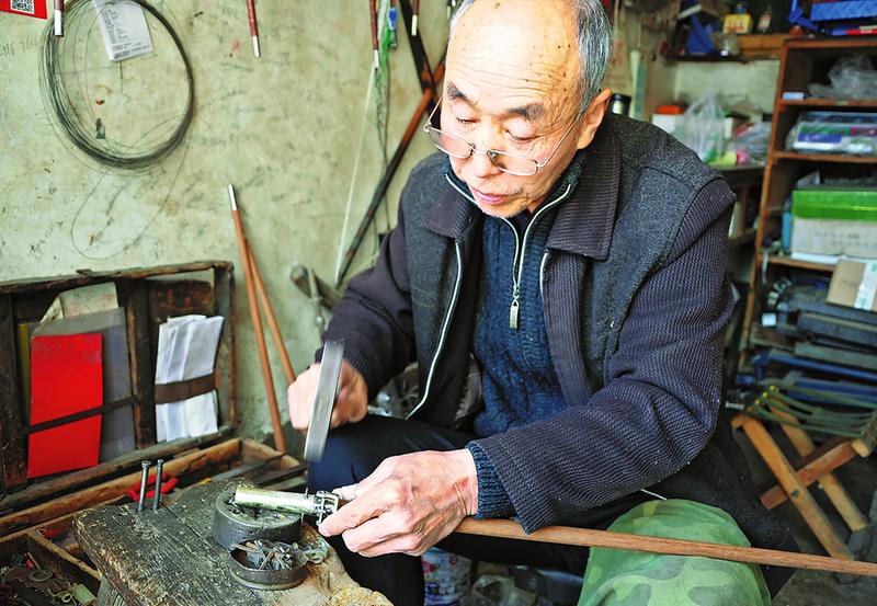 據(jù)魏寬琪介紹,他們魏家三代人一直以釘秤為生。1960年前后,他的父親魏西海辦起了私人秤鋪,從事釘秤生意。1968年,初中畢業(yè)的他就學(xué)會了這門手藝,跟著父親在家里釘秤。2013年,31歲的兒子魏龍子承父志接了他的班,他就過起了含飴弄孫的悠閑日子。然而,令他沒有想到的是,去年7月份兒子嫌收入低放棄了這門生意,到浙江湖州打工去了。不得已,他又重操舊業(yè),拾起了自己的老本行。