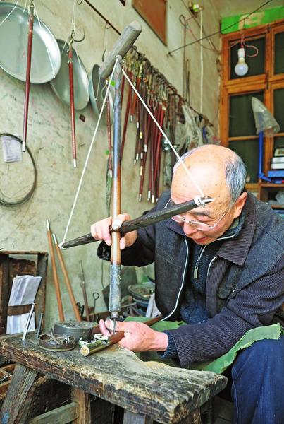今年3月份,在洛南縣城西街柏槐社區(qū)臨街只有一間門面的秤鋪里,三組居民魏寬琪和焦鳳琴夫婦正嫻熟地演繹著這門即將失傳的絕活——釘木桿秤技藝。