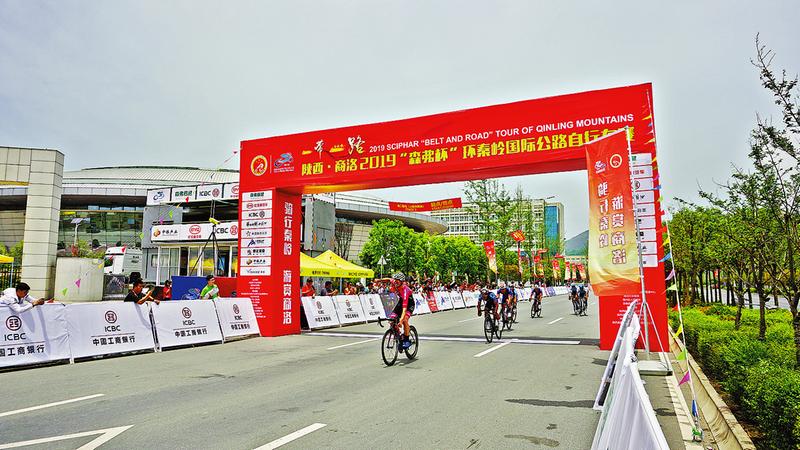 6月4日,在環(huán)秦嶺賽山路繞圈賽中,澳大利亞圣喬治洲際隊(duì)的哈伯德·托馬斯領(lǐng)跑第一方陣率先沖線(xiàn)。(黨率航 攝)