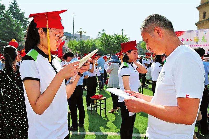 6月9日,商州區(qū)中學(xué)舉行高2020級(jí)學(xué)生十八歲成人禮暨高三啟航儀式。伴著老師和家長(zhǎng)的美好祝福,學(xué)生們冠戴成人帽、走過(guò)成人門,懷著感恩之心、領(lǐng)悟責(zé)任擔(dān)當(dāng),許下青春誓言、向人生夢(mèng)想奮進(jìn)。(黨率航攝)