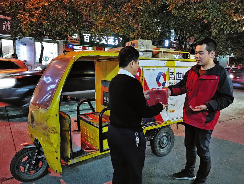 當日凌晨五點半,在商州區陳塬街道辦百世快遞公司的分揀倉庫里,快遞員王博和同事們一起迅速分揀剛運抵的包裹。王博說:“快遞量比平時多出很多,大家都在加班加點,只想著能快一點把快遞送到客戶手里。”早上10點出發前,王博仔細檢查了三輪車上的貨物,他說:“平時一天送140多件快遞,‘雙十一’期間比平時多了一倍。今天貨多,一會還要再回來拉一車。”“比平時多了這么多,當天送貨有壓力嗎?”記者隨口一問。他笑著說:“說實話,已經習慣了。今年是我第二年參與‘雙十一’派送了,每年‘雙十一’前夕公司都會安排專門的培訓會,針對可能出現的問題作出應對,有一套成熟的應對機制。而且每個快遞員在平時派送工作中已經摸索出一套適合自己的方法,能夠確保送達率98%以上。”作為一名80后快遞員,王博對工作永遠是活力滿滿,“平時早上7點多去倉庫分揀,10點多開始配送。‘雙十一’期間快件多,每天早上五點半左右就要趕到,把分揀的時間提前就能給自己派送留夠時間。”