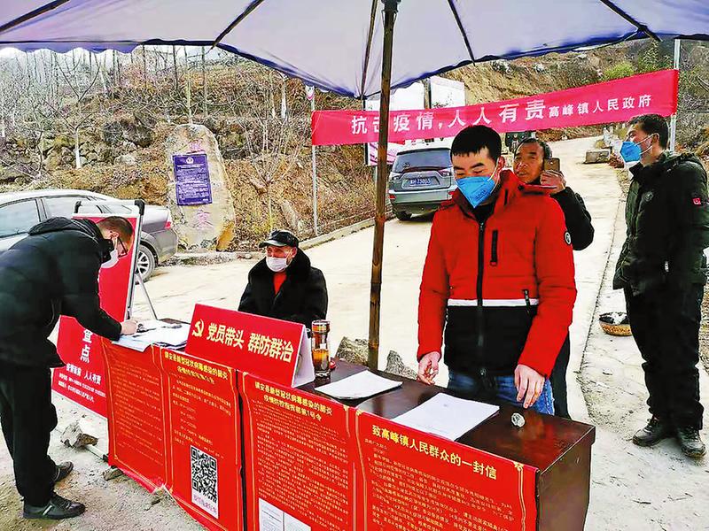 柞水縣公安局鳳鎮派出所黨員從戰“疫”伊始,全員24小時在崗,并及時成立了“鳳鎮派出所民警黨員疫情防控領導專班”,晝夜投身核查點執勤和協同衛生部門對相關人員、車輛進行核查,并向群眾告知有關疫情最新情況和防護知識,對從湖北返鄉人員進行隔離篩查。(米昊 攝)