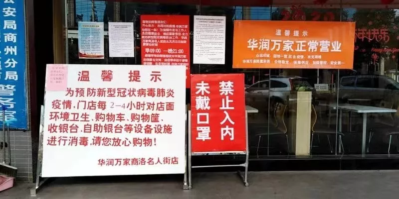 華潤(rùn)萬(wàn)家在超市大門(mén)口設(shè)置防疫提示牌