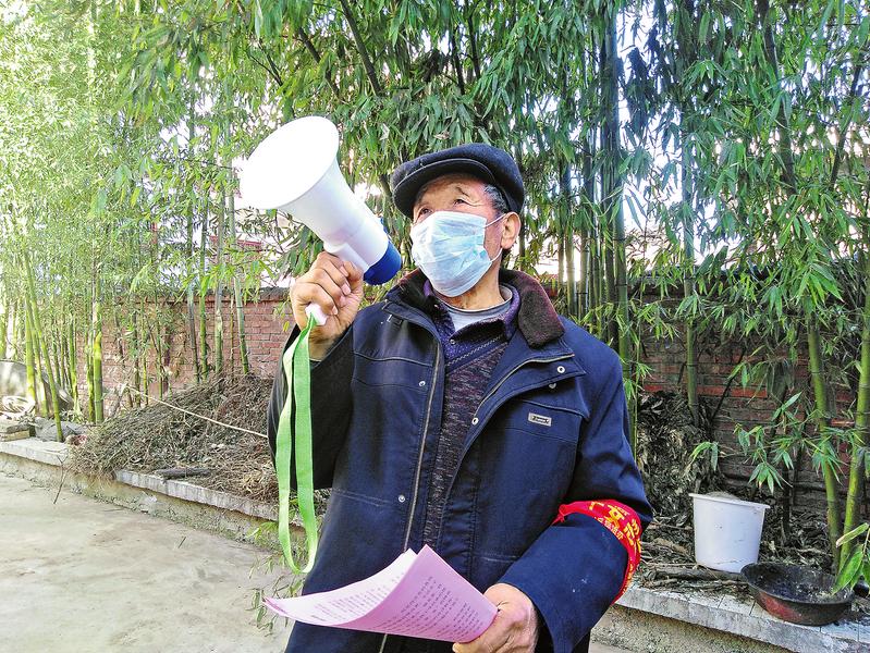 2月17日,在商州區(qū)夜村鎮(zhèn)李河灘村一戶群眾的大門前,72歲的老人郭百強戴著口罩,手持電喇叭,向群眾說快板宣傳新冠肺炎疫情防控工作。郭老的愛心和善舉受到村民的贊許,也有效提高了村民疫情防控意識。
