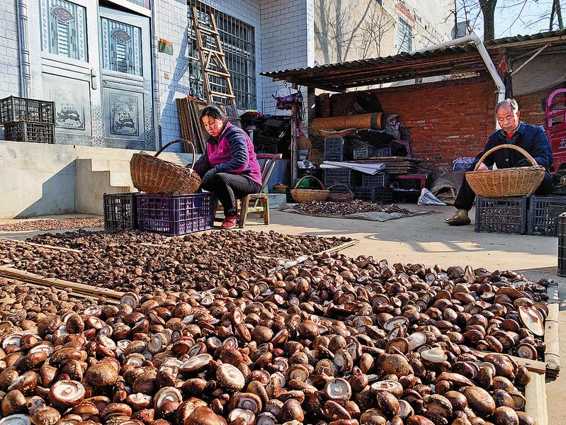 夜村鎮(zhèn)代朝波家院子曬滿了剛采的香菇