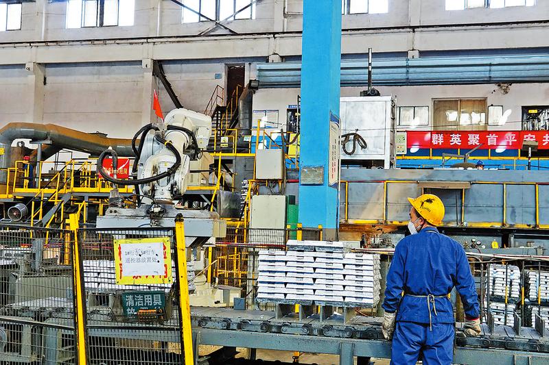 陜西鋅業(yè)有限公司車間流水線上,鋅塊源源不斷地生產(chǎn)著。
