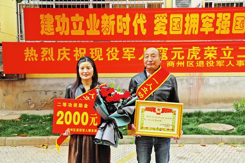 本報(bào)訊(記者 謝非)3月26日,市區(qū)移動(dòng)路一小區(qū)里鑼鼓喧天,商洛軍分區(qū)相關(guān)負(fù)責(zé)同志將一張二等功獎(jiǎng)狀遞到現(xiàn)役軍人寇元虎父母手中。