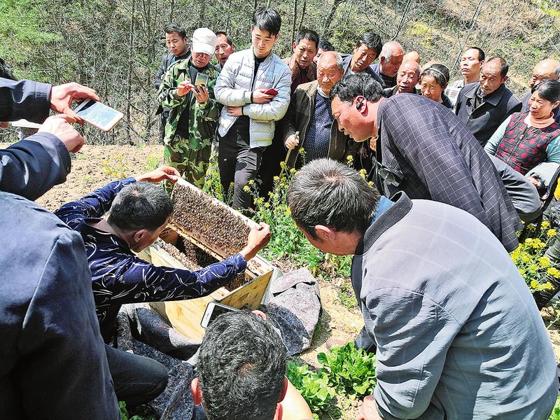 3月25日,商州區(qū)農業(yè)農村局培訓中心在沙河子鎮(zhèn)石窯子村養(yǎng)蜂基地開展中華蜂養(yǎng)殖實用技術培訓,該村50多戶貧困戶參加培訓。培訓通過現(xiàn)場教學,手把手為養(yǎng)蜂農戶釋疑解惑。(記者 費翔 攝)