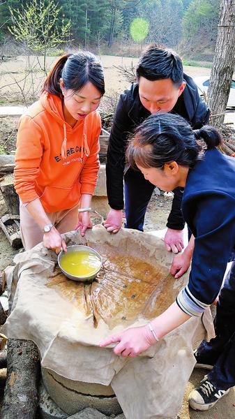 老吳帶我看了看他儲藏在房子里的糧食說,糧食沒問題,生活沒大問題。采訪間隙,老吳的老伴帶女兒女婿做豆腐、做土菜、打糍粑,一陣忙碌,菜就上來了。老李打開帶來的酒,老吳拿出紫砂茶杯做酒杯,一杯近一兩酒。老李說,這老哥“杠活”好客,做人喝酒都實誠。三打五除二,我們4個喝酒的兩杯就喝完了,老吳還要開酒,我們擋了。