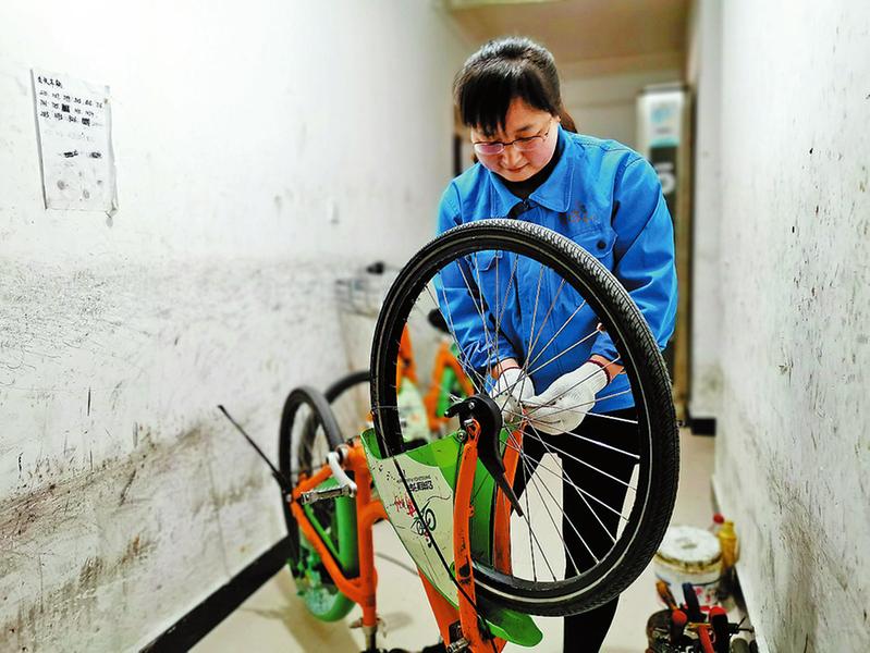 李曉莉?qū)τ浾哒f,當(dāng)初得知自己要去修理自行車時,許多人都不看好她。“修車子的大都是男同志,你一個女人能修好嗎?”類似的質(zhì)疑不絕于耳。她進入崗位后,跟師傅認(rèn)真學(xué)習(xí),從一開始啥也不會到如今修理嫻熟,都是這幾年經(jīng)驗的累積和辛勤的付出。“我們這個修理小團隊里,女同志還挺多,誰說我們女同志干不了維修?”她打趣道。