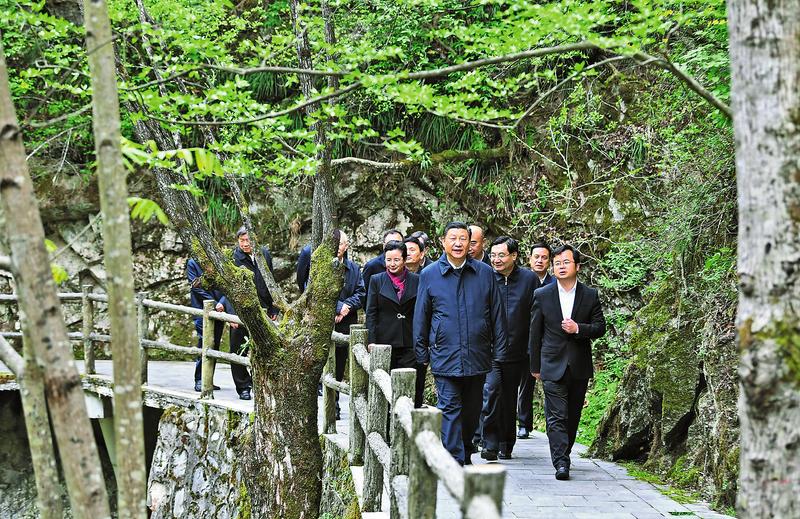 4月20日至23日,中共中央總書記、國家主席、中央軍委主席習(xí)近平在陜西考察。這是4月20日,習(xí)近平在位于秦嶺山脈東段的牛背梁國家級自然保護(hù)區(qū)羚牛谷,了解秦嶺生態(tài)環(huán)境保護(hù)情況。(新華社記者 謝環(huán)馳 攝)