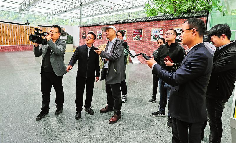 圖③:小嶺鎮(zhèn)黨委書記安怡(左二)向媒體記者介紹情況