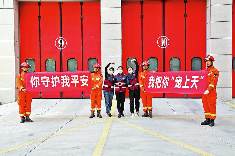 市消防救援支隊丹南路特勤站站長助理劉多海說:“我們在網上看到,有抗疫人員在防護服上寫到想坐消防車,所以我們今天特意邀請他們來參觀體驗,滿足他們的愿望,同時也是向他們表達一份敬意。”