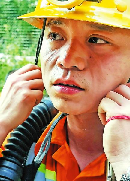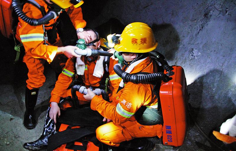 背負(fù)著 20 公斤的裝備走完 1000米的礦洞, 隊員汗流浹背 。