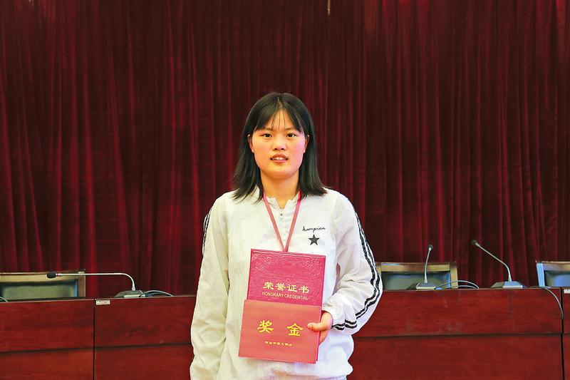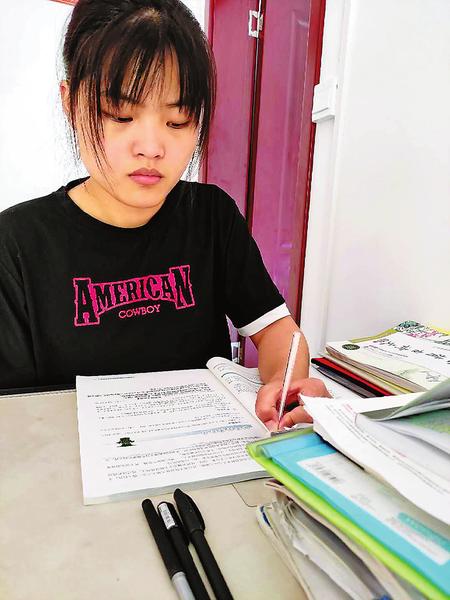 高三的生活很累,每天有很多作業(yè),她努力提高書寫速度,盡量跟上老師的節(jié)奏。作業(yè)寫得慢,就熬夜寫到凌晨;知識(shí)點(diǎn)背不過,就一遍遍重復(fù)。她是文科生,很多人擔(dān)心她寫不完文綜卷子,第一次月考時(shí),她就默默告訴自己一定要把題做完。在這個(gè)信念的支持下,高三的10次月考,她每次都把卷子一題不落地做完了。雖然也有過失誤,看著總是上不去的分?jǐn)?shù)也很著急,但她能夠從每一次的失誤中總結(jié)出經(jīng)驗(yàn)教訓(xùn),查漏補(bǔ)缺,哪里不會(huì)就補(bǔ)哪里,遭受多少次打擊也從不言棄。
