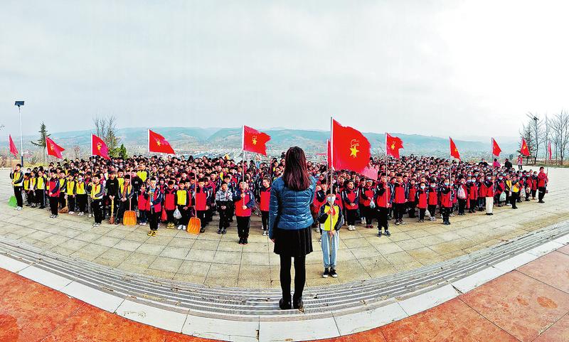 3月15日,洛南縣古城鎮中心小學開展“弘揚雷鋒精神,建設美麗古城”環境衛生整治活動,學校組織705名少先隊員沿古城街道分東、西兩路撿拾地上的果皮、紙屑、煙頭,清除墻壁上的小廣告,打掃衛生死角,讓古城街環境面貌煥然一新。(陳宏哲攝)