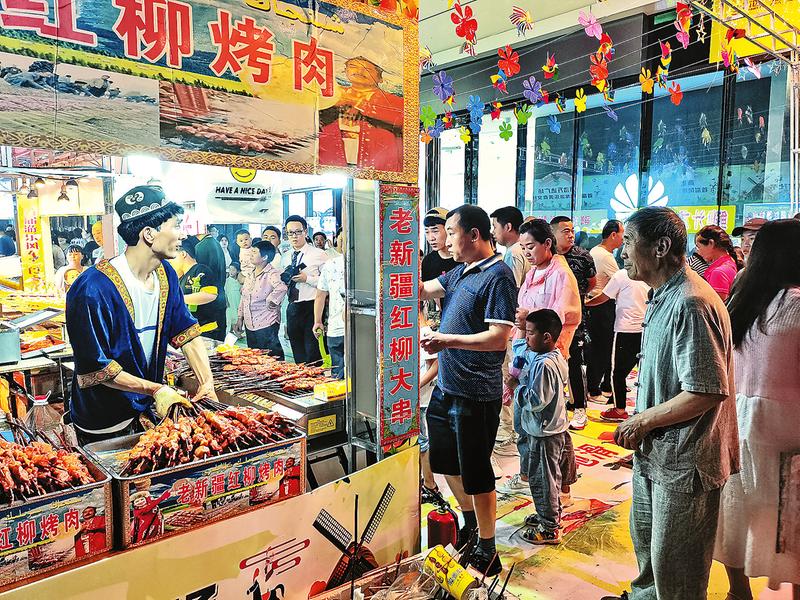 6月12日,市區一商場舉辦美食節活動,吸引了眾多商販參與,一些市民前往享用特色美食。夜間經濟是現代城市業態之一,指從當日下午6點到次日早上6點所包含的經濟文化活動,其業態囊括晚間購物、餐飲、旅游、娛樂、學習、影視、休閑等,已被廣大市民認可和接納。