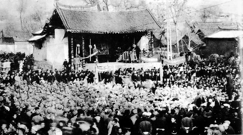 1949年12月15日,商縣人民群眾慶祝商洛分區暨陜西全省解放大會現場。(資料照片)
