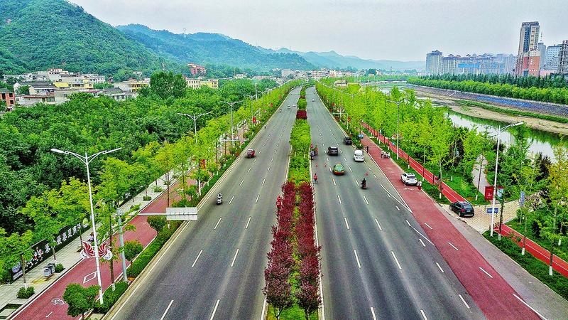 商鞅大道是我市近年來(lái)著力打造的城市主干道,也是一條城市景觀大道、生態(tài)大道。它暢通了中心城區(qū)交通主動(dòng)脈,加快了南秦新區(qū)和丹南片區(qū)開(kāi)發(fā)建設(shè)。商鞅大道全長(zhǎng)7.9公里,總寬43米。大道兩側(cè)栽植銀杏、大葉女貞、七葉樹、桂花等喬木3725株,綠化面積25870.2平方米,綠地率20%。四季色彩分明,八月桂花飄香,商鞅大道已經(jīng)成為名副其實(shí)的生態(tài)綠廊。圖為8月19日,記者航拍的商鞅大道西段。(記者 楊鑫 攝)