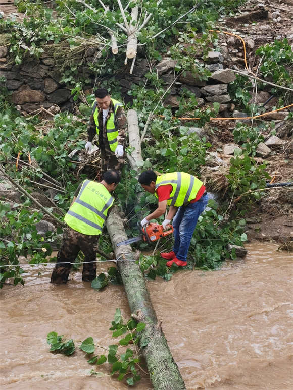 救災(zāi)隊(duì)為災(zāi)區(qū)清理河道