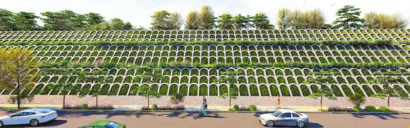 環(huán)城北路邊坡治理工程點(diǎn)狀分布于環(huán)城北路全段道路兩側(cè)。工程主要通過(guò)拱形骨架、抗滑樁、混凝土擋墻加固因2021年暴雨損毀的護(hù)坡,并對(duì)護(hù)坡周邊山體進(jìn)行生態(tài)修復(fù),實(shí)施邊坡立體綠化,有效改善環(huán)城北路兩側(cè)生態(tài)環(huán)境,有力保障城市道路運(yùn)行安全。