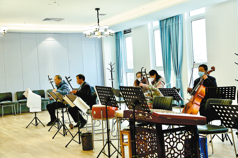 在金山康養城休閑娛樂中心,老人們自發組織樂團排練樂曲。