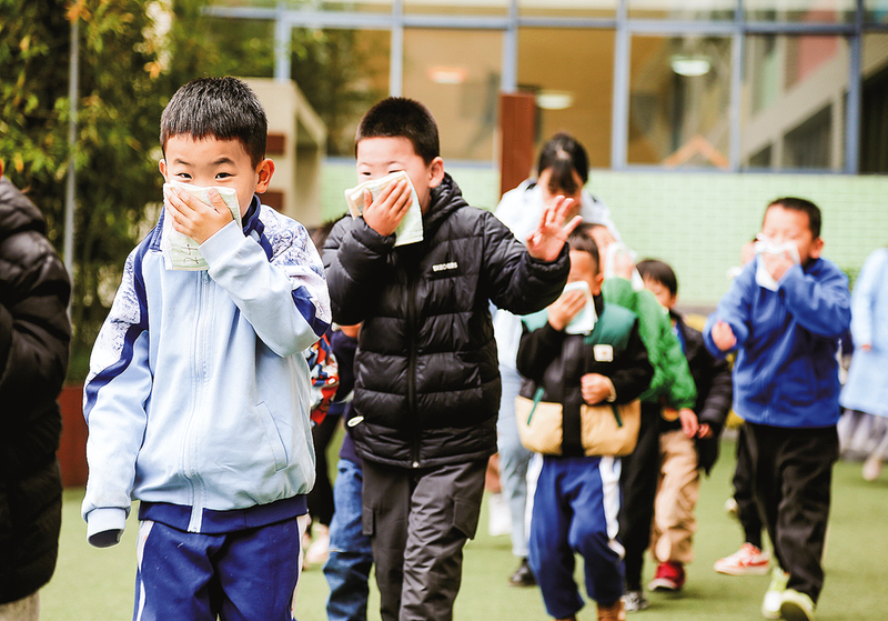 11月9日是我國第32個全國消防安全日,為進一步普及消防安全知識,增強消防安全意識,掌握在突發火災時迅速逃生、自救、互救的基本技能,商洛市幼兒園在當天開展了消防應急演練活動。 (本報記者 王江波 攝)