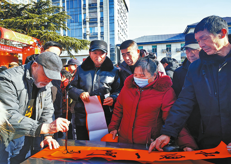一月二十五日,由市委文明辦、市文聯(lián)、市慈善協(xié)會、商洛職業(yè)技術(shù)學(xué)院、商州區(qū)紀(jì)委監(jiān)委主辦的“我們的中國夢·文化進(jìn)萬家”迎春送福義寫春聯(lián)文明實踐活動在市區(qū)戲曲文化廣場舉行。活動現(xiàn)場墨香四溢,百余名書法家和書法工作者共義寫春聯(lián)兩千多副,為大家送去新春祝福。 (本報記者 肖 蓮 攝)