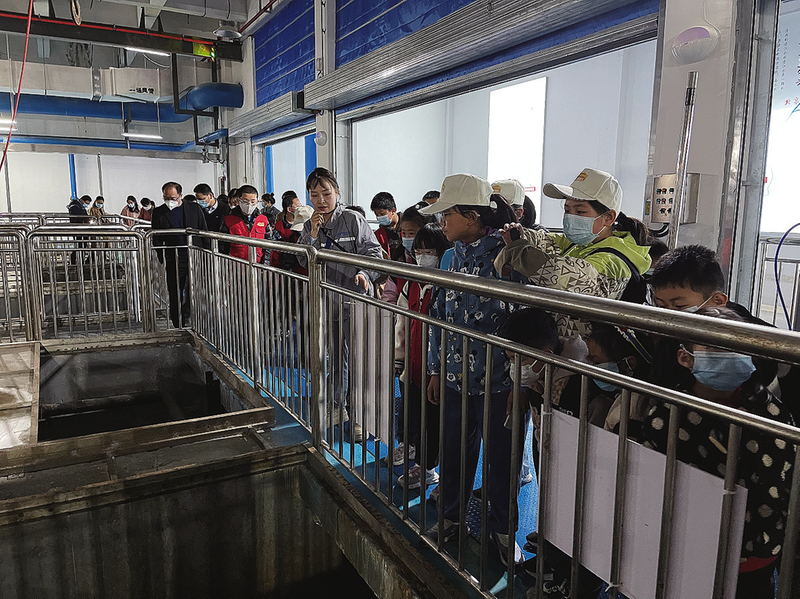 9時許,小記者來到工業污水處理廠,在工作人員的帶領下,觀看環保宣傳片,并參觀了預處理區、生物處理區、深度處理區、再生水利用區、污泥處理區,了解曝氣沉沙池、調節池、初沉池、生化處理段、膜設備間等環節的處理過程。當看到污水源源不斷地流入處理設施,大家不禁驚嘆,原來城市中的工業污水都匯聚于此。