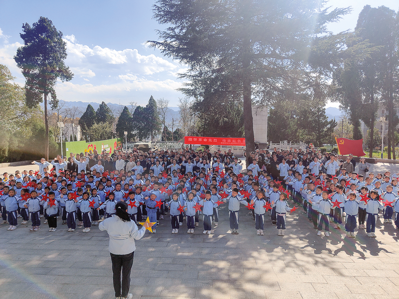 ?為緬懷革命先烈,加強(qiáng)對(duì)青少年的愛國(guó)主義教育和革命傳統(tǒng)教育,3月29日,山陽(yáng)縣南寬坪鎮(zhèn)中心小學(xué)組織五年級(jí)少先隊(duì)員前往南寬坪鎮(zhèn)烈士陵園進(jìn)行清明祭掃活動(dòng),深切緬懷先烈們的豐功偉績(jī)。(本報(bào)通訊員 毛家美 攝)
